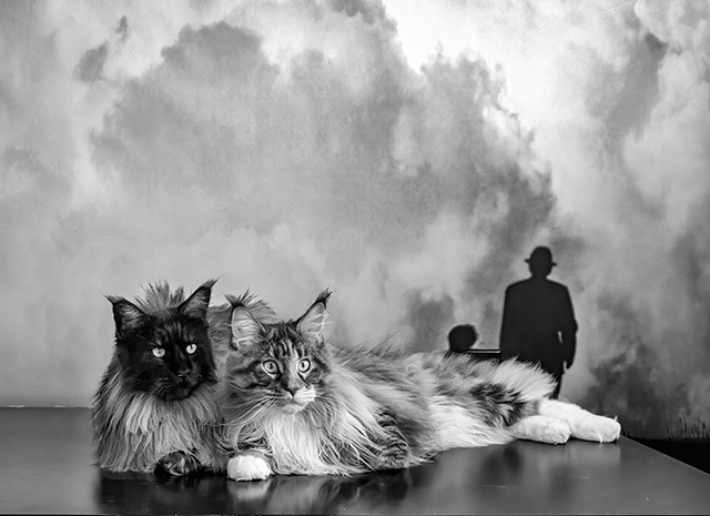 A photo of my cats, Vivian and Bean in front of Stefan Eisele's photograph 'Waiting for the Storm' which is on a wall in my home.